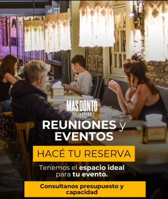 Nuestra historia comienza como “Don Tomas”, un clásico de la ciudad, pero en un giro inesperado, nuestro dueño decidió cortar el cartel al medio, por cuestiones familiares marcando un crecimiento personal y un cambio total en el local. Así nació Mas Donto, un lugar que mantiene la esencia de la tradición pero con una personalidad única. Acá vas a disfrutar de los mejores almuerzos y cenas de Bahía Blanca, en un ambiente auténtico.